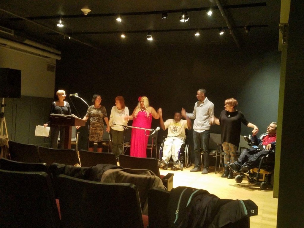 to share with an audience. Through workshopping and discussion, scripts were created, and each participant told their story. The topics ranged from misconceptions of persons with disabilities, dating, sexuality, physical health, and the arts. Since the event took place, the participants have continued to encourage and support one another through other ITOWNY events such as writing groups, acting and improvisation classes, and full-length theatrical productions.